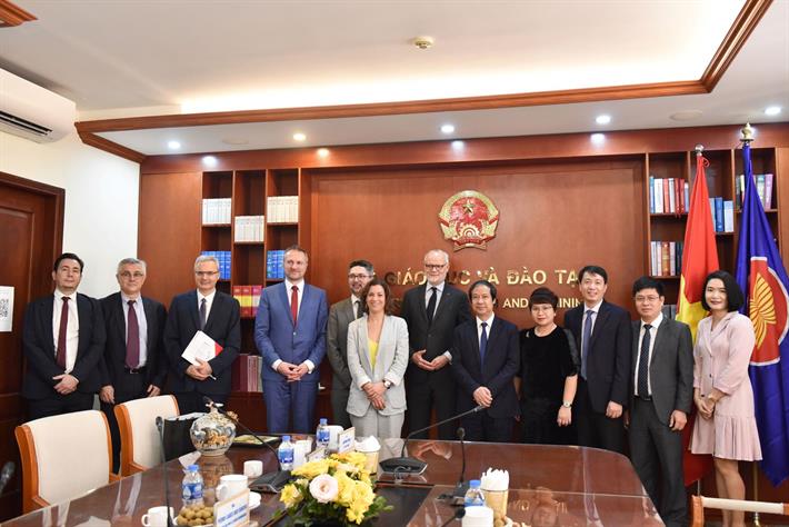Sáng 13/2, tại Bộ Giáo dục và Đào tạo (GDĐT), Bộ trưởng Nguyễn Kim Sơn đã có buổi tiếp ngài Edouard Philippe, nguyên Thủ tướng Cộng hòa Pháp, Thị trưởng thành phố Le Havre đang có chuyến thăm và làm việc tại Việt Nam. Cùng dự buổi tiếp có ngài Nicolas Warnery, Đại sứ Cộng hoà Pháp tại Việt Nam.