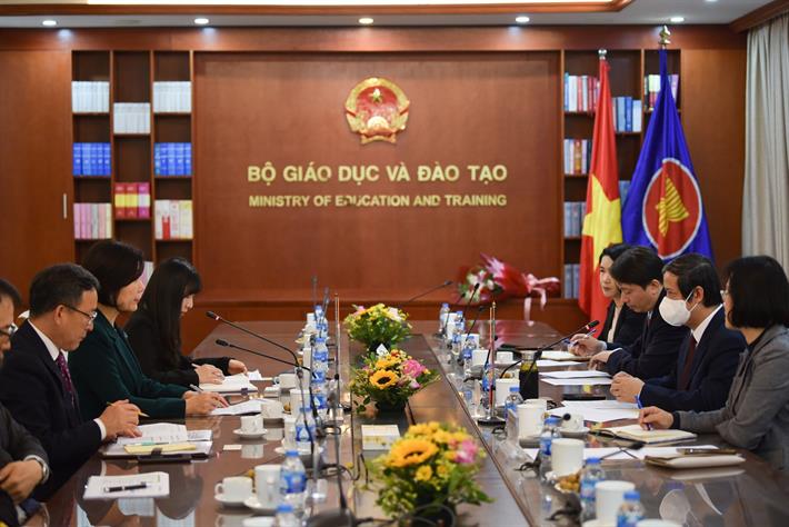 Sáng 7/3, tại Bộ Giáo dục và Đào tạo (GDĐT), Bộ trưởng Nguyễn Kim Sơn đã có buổi tiếp Đại sứ Hàn Quốc tại Việt Nam, bà Oh Young Ju.