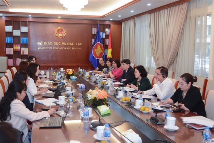 Cũng tại buổi làm việc, hai bên đã trao đổi, thảo luận một số nội dung như: nâng cao chất lượng giáo dục mầm non vùng dân tộc thiểu số, tăng cường tiếng Việt cho trẻ em trên cơ sở tiếng mẹ đẻ của trẻ; chuyển đổi sách giáo khoa, tài liệu học tập sang sách chữ nổi; phát triển học liệu phục vụ dạy và học cho học sinh khuyết tật nghe nói, học sinh khiếm thị; hỗ trợ một số các cơ sở giáo dục đối với học sinh khuyết tật đang hoạt cơ sở vật chất, thiết bị dạy học, học liệu, nâng cao năng lực cho đội ngũ giáo viên,...