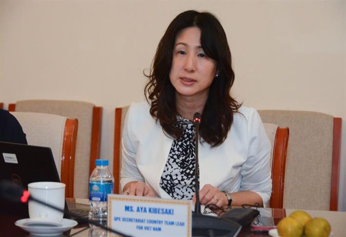 Trân trọng cảm ơn Bộ GDĐT đã tiếp đón đoàn làm việc, bà Aya Kibesaki, Trưởng nhóm Quốc gia tại Việt Nam, Ban Thư ký GPE khẳng định GPE luôn cố gắng hỗ trợ và sẵn sàng đầu tư vào Việt Nam. Với mục tiêu không ngừng cải thiện chất lượng giáo dục. Bà Aya Kibesaki cho biết, mong muốn của GPE là không chỉ hỗ trợ Việt Nam về mặt tài chính mà còn cả về mặt kỹ thuật.
