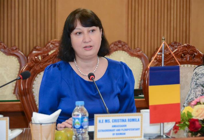 Phát biểu tại buổi lễ, bà Cristina Romila, Đại sứ Rumania bày tỏ niềm vui khi hai nước Việt Nam và Rumani ký kết hợp tác giáo dục giai đoạn 2022-2026. Bà Cristina Romila cho biết, Rumani luôn trân trọng quan hệ hợp tác lâu đời với Việt Nam. Rất nhiều học sinh, sinh viên tốt nghiệp tại Rumani đã và đang đóng góp cho sự phát triển của Việt Nam là minh chứng rõ ràng cho mối quan hệ tốt đẹp giữa hai nước. Bà Cristina Romila hi vọng hai bên tiếp tục đồng hảnh, đảm bảo thực hiện những nội dung được quy định trong thỏa thuận ký kết.
