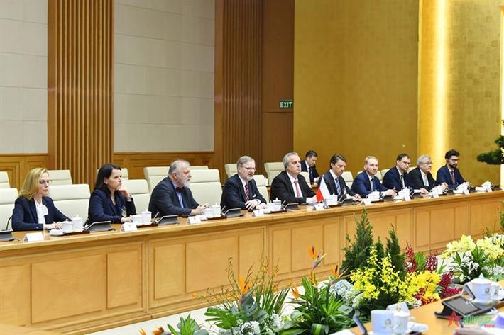 Thủ tướng Petr Fiala và đoàn đại biểu cấp cao Cộng hòa Séc tại hội đàm. Ảnh - Tuấn Huy