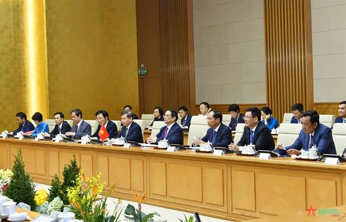 Thủ tướng Phạm Minh Chính và đoàn đại biểu cấp cao Việt Nam tại hội đàm. Ảnh - Tuấn Huy
