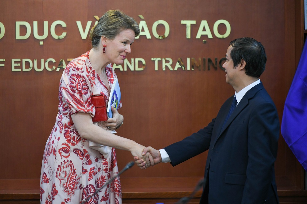 Bộ trưởng cũng chia sẻ sự cảm động khi được biết trên cương vị Hoàng hậu bà Mathilde đã dành nhiều sự quan tâm cho giáo dục, cho trẻ em, đồng thời cho biết: Bộ GDĐT Việt Nam có quan hệ sâu sắc và nhận được sự hỗ trợ rất lớn từ UNICEF trong các hoạt động giáo dục nói chung và giáo dục ở cấp mầm non, giáo dục cho trẻ em miền núi, vùng khó khăn nói riêng.