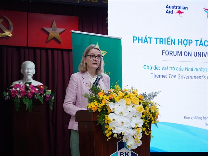 Tổng lãnh sự quán Australia tại TP Hồ Chí Minh Sara Hooper phát biểu tại diễn đàn