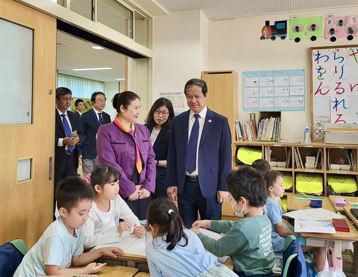 Trước đó, Bộ trưởng Nguyễn Kim Sơn và đoàn công tác Bộ GDĐT đã tới thăm Trường Tiểu học Nadeshiko. Tại đây, Bộ trưởng đã tới thăm mô hình lớp học kiểu Nhật, thăm các phòng học bộ môn, thư viện và trò chuyện với học sinh, giáo viên nhà trường.