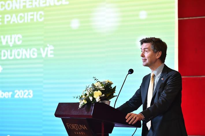 Ngài Julien Guerrier, Đại sứ EU tại Việt Nam, phát biểu tại hội nghị