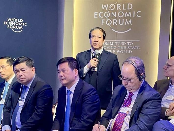 Với tư cách thành viên Chính phủ tháp tùng Thủ tướng, Bộ trưởng Bộ GDĐT Nguyễn Kim Sơn đã tham dự các sự kiện: Tọa đàm thu hút đầu tư lĩnh vực bán dẫn; đối thoại chiến lược quốc gia Việt Nam - WEF với các tập đoàn hàng đầu của WEF về chủ đề “Chân trời phát triển mới: Thúc đẩy chuyển đổi, mở ra các động lực tăng trưởng mới tại Việt Nam”; phiên Đối thoại chính sách “Việt Nam: Định hướng tầm nhìn toàn cầu”; chứng kiến ký kết MOU thành lập Trung tâm C4IR và Ý định thư Sáng kiến mạng lưới toàn cầu tăng tốc thu hẹp khoảng cách kỹ năng; tiếp xúc song phương với nhà sáng lập kiêm Chủ tịch điều hành WEF.