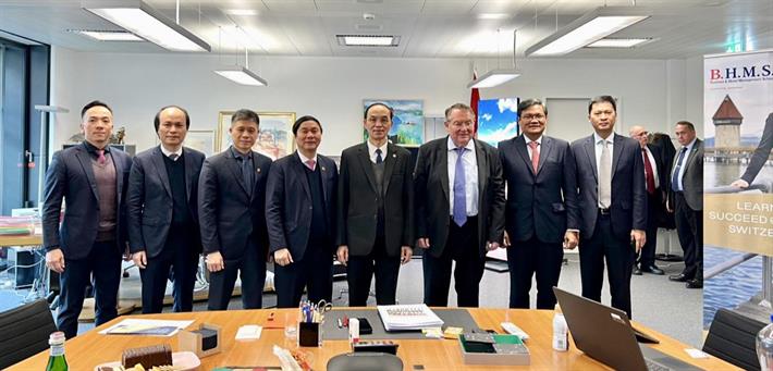 Trong khuôn khổ chuyến công du, chiều ngày 16/1, tại trụ sở của Tập đoàn giáo dục Benedict Group đã diễn ra Lễ ký kết và trao thỏa thuận hợp tác giữa Hiệu trưởng 6 trường đại học của Việt Nam gồm Trường Đại học Giao thông vận tải, Trường Đại học Thuỷ Lợi, Trường Đại học Xây dựng Hà Nội, Trường Đại học Mở TP. HCM, Trường Đại học Kinh tế và Quản trị Kinh doanh - Đại học Thái Nguyên, Trường Đại học Y Dược - Đại học Thái Nguyên với Hiệu trưởng Trường Quản trị khách sạn và Kinh doanh (Business and Hotel Management School) BHMS của Tập đoàn giáo dục Benedict Group, Thụy Sỹ.