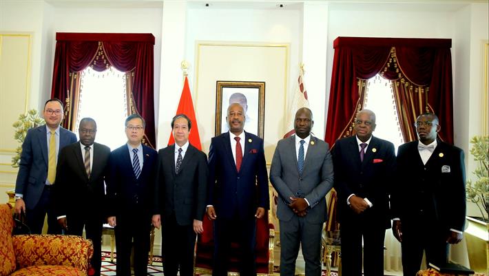 Phó Chủ tịch Thường trực Quốc hội Angola Américo António Cuononoca (thứ 4, từ phải sang) chụp ảnh lưu niệm với Bộ trưởng Nguyễn Kim Sơn