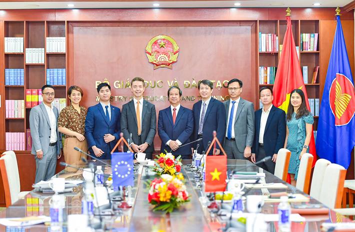 Để thúc đẩy hợp tác giáo dục Việt Nam - EU, Bộ trưởng bày tỏ mong muốn ngài Đại sứ quan tâm tăng cường thúc đẩy hợp tác và phối hợp tổ chức hội nghị cấp khu vực và quốc tế trong khuôn khổ ASEMME (Hội nghị Bộ trưởng Giáo dục Á - Âu); tích cực thúc đẩy hơn nữa hợp tác giáo dục giữa Việt Nam và EU, thông qua các lĩnh vực EU có thế mạnh; tiếp tục thúc đẩy một số chương trình đang hoạt động để đạt hiệu quả tốt hơn nữa…