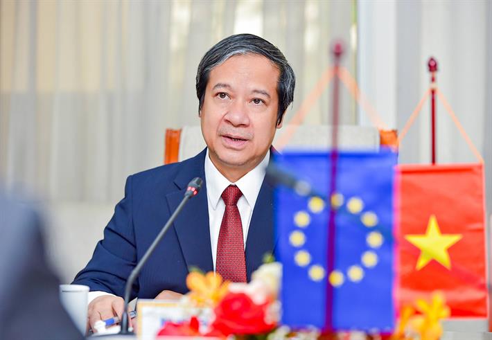 “Chính phủ Việt Nam đang rất quan tâm đến các lĩnh vực như: Công nghệ bán dẫn, công nghệ sinh học, năng lượng mới, trí tuệ nhân tạo… và nhiều lĩnh vực công nghệ khác. Mong ngài Đại sứ thông tin, kết nối để các trường đại học Việt Nam có thêm những hợp tác với trường đại học của EU có ưu thế trong các lĩnh vực này”. Bộ trưởng chia sẻ và khẳng định mối quan tâm cũng như nỗ lực để thúc đẩy hợp tác và đầu tư nước ngoài trong lĩnh vực giáo dục và đào tạo, trong đó có Liên minh châu Âu.