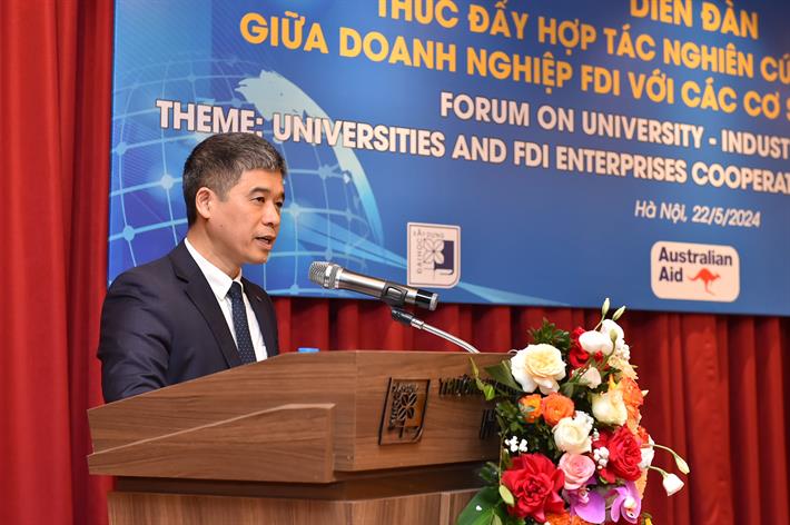 Để kết nối hoạt động hợp tác giữa các doanh nghiệp FDI với các cơ sở giáo dục đại học, phục vụ nhu cầu ngày càng tăng về số lượng và chất lượng nguồn nhân lực trong các doanh nghiệp nói chung, các doanh nghiệp FDI nói riêng, Thứ trưởng nhấn mạnh: Bộ GDĐT tổ chức Diễn đàn thúc đẩy hợp tác trong nghiên cứu và đào tạo giữa doanh nghiệp FDI với các cơ sở giáo dục đại học. Diễn đàn là một trong số các hoạt động mà Chính phủ đã giao cho Bộ GDĐT thực hiện thường niên theo Quyết định số 308/QĐ-TTg ngày 28/3/2023 của Thủ tướng Chính phủ phê duyệt Kế hoạch hành động thực hiện Chiến lược hợp tác đầu tư nước ngoài giai đoạn 2021-2030.