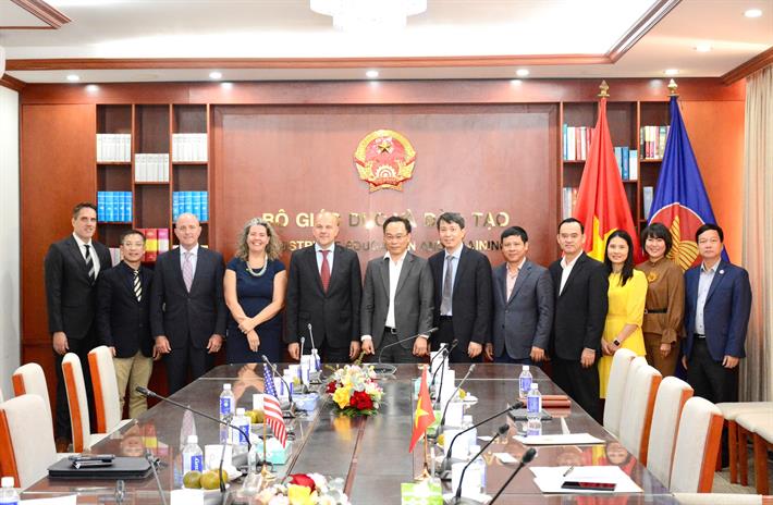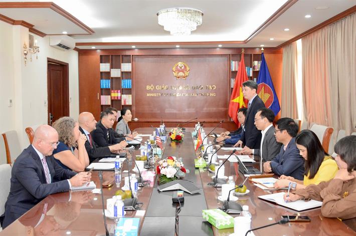 Trao đổi tại buổi làm việc, Thứ trưởng Hoàng Minh Sơn cho biết, thời gian qua, các trường đại học tại Hoa Kỳ thông qua các dự án của Cơ quan phát triển quốc tế Hoa Kỳ đã giúp tăng cường hợp tác trong giáo dục đại học giữa Hoa Kỳ và Việt Nam.