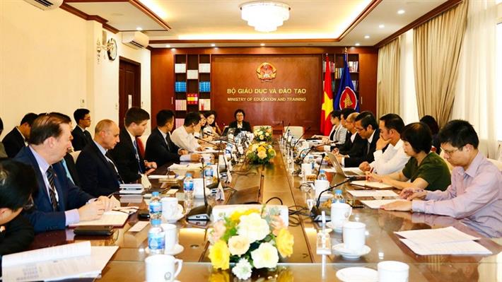 Đại diện Đoàn doanh nghiệp cấp cao của Hội đồng Kinh doanh Hoa Kỳ - ASEAN, ông Vũ Tú Thành, Phó giám đốc điều hành cảm ơn các đại diện Bộ GDĐT đã dành thời gian tiếp và giải đáp các quan tâm của Đoàn. Ông Vũ Tú Thành hy vọng thông qua buổi làm việc Bộ GDĐT sẽ hiệu rõ hơn về sứ mệnh cũng như có những hỗ trợ trong việc xây dựng chính sách, tạo điều kiện thuận lợi để các doanh nghiệp Hoa Kỳ tiếp tục công tác hỗ trợ, liên kết đào tạo, đầu tư vào các trường học, cơ sở giáo dục tại Việt Nam.