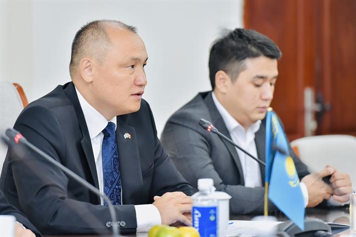 Đại sứ Kazakhstan Kanat Tumysh trao đổi tại buổi tiếp