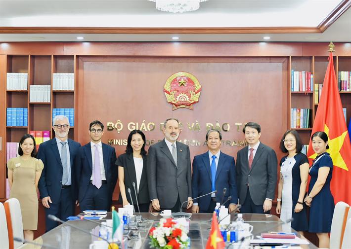 Vui mừng được gặp Bộ trưởng Bộ GDĐT Nguyễn Kim Sơn, Đại sứ Italia tại Việt Nam Marco Della Seta chia sẻ, giáo dục và đào tạo là lĩnh vực quan trọng trong quan hệ hợp tác giữa Việt Nam và Italia, đây cũng tiếp tục là lĩnh vực được quan tâm thúc đẩy hợp tác trong thời gian tới.