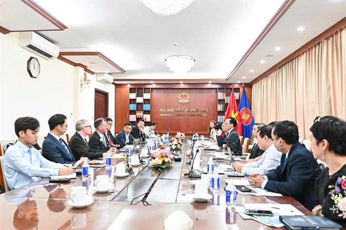 Thứ trưởng Hoàng Minh Sơn trao đổi tại buổi làm việc