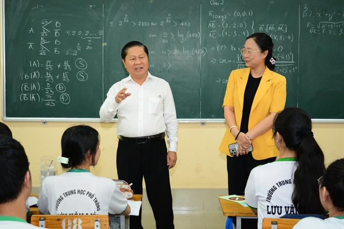 Tại điểm thi Trường THPT Lưu Văn Liệt, tỉnh Vĩnh Long, Thứ trưởng Lê Tấn Dũng đã tiến hành khảo sát kỹ lưỡng về điều kiện cơ sở vật chất, công tác bảo đảm an toàn, an ninh tại điểm thi.