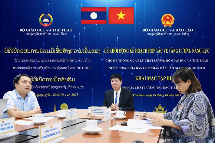 Sáng 9/10, tại trụ sở Bộ Giáo dục và Thể thao Lào, Cục Quản lí chất lượng, Bộ Giáo dục và Đào tạo (GDĐT) Việt Nam, phối hợp với Cục Đảm bảo chất lượng, Bộ Giáo dục và Thể thao Lào, tổ chức Lễ khởi động Kế hoạch hợp tác tăng cường năng lực cho hệ thống quản lí chất lượng giáo dục Lào giai đoạn 2021–2030.