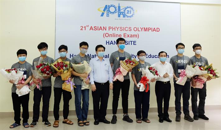 Trưởng đoàn APhO Việt Nam năm 2021 gửi lời cảm ơn tới Bộ GDĐT đã tạo mọi điều kiện để các học sinh có thể dự thi trực tuyến; Trường Đại học Sư phạm Hà Nội đã cung cấp địa điểm, trang thiết bị thực hành, ôn tập. Đặc biệt, đội ngũ thầy cô khoa Vật lý (Trường ĐH Sư Phạm Hà Nội) đã sát sao, cập nhật các nội dung, phương pháp huấn luyện mới cho thí sinh, nhất là kỹ năng làm thí nghiệm mô phỏng trên máy tính để phù hợp với thay đổi hình thức thực hành năm nay.
