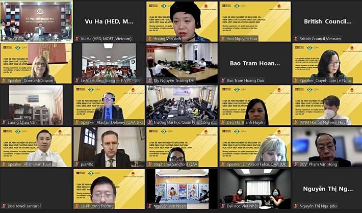 Hội thảo cũng trao đổi về những nội dung cơ bản của Dự thảo Đề án phát triển hệ thống bảo đảm và kiểm định chất lượng GDĐH giai đoạn 2021-2030; việc triển khai các hoạt động đánh giá của QAA tại Vương quốc Anh; thảo luận về mô hình hợp tác GDĐH của Vương quốc Anh và Việt Nam về bảo đảm và nâng cao chất lượng...