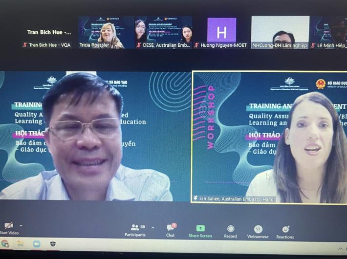 Về phía Đại sứ quán Úc tại Việt Nam, bà Jen Bahen - Tham tán giáo dục và nghiên cứu khẳng định mối quan hệ hợp tác tốt đẹp với Bộ GDĐT Việt Nam và đánh giá cao những quy định kịp thời về dạy học trực tuyến cũng như đảm bảo chất lượng trong dạy học trực tuyến, trực tiếp kết hợp trực tuyến trong bối cảnh ứng phó dịch Covid -19 của Bộ GDĐT trong thời gian qua.