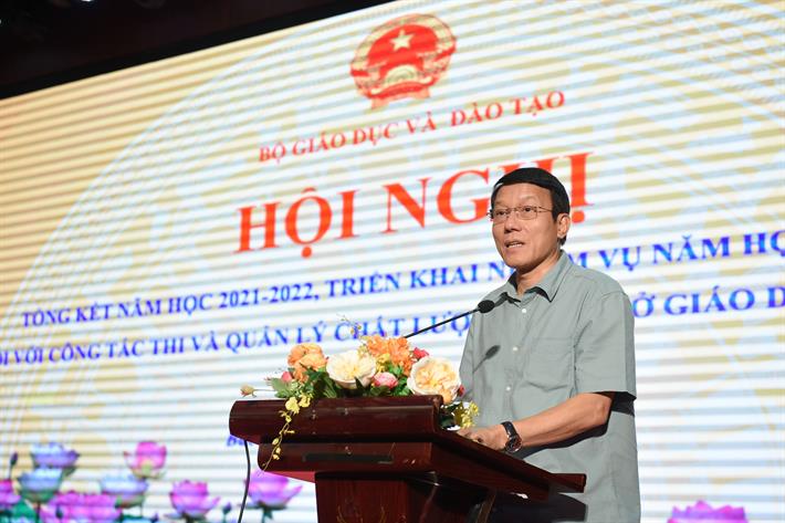 Với một hội nghị mang tính chất chuyên môn như Hội nghị triển nhiệm vụ năm học 2022-2023 đối với công tác thi và quản lý chất lượng, Bộ trưởng đề nghị, đại diện các Sở GDĐT, các Bộ, ngành tham dự tập trung trao đổi khẳng định những việc đúng, việc đã làm tốt, những vấn đề cần làm để kỳ thi năm sau tốt hơn, đổi mới hơn, hiệu quả hơn, an toàn hơn. “Mỗi kỳ thi đều có khó khăn, thách thức khác nhau. Đã làm tốt rồi cố gắng làm tốt hơn nữa, tinh thần là không chủ quan”, Bộ trưởng nói.