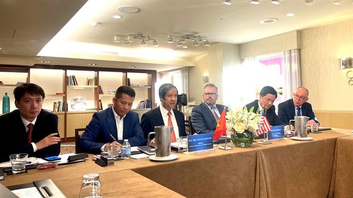 Bộ trưởng Nguyễn Kim Sơn trao đổi tại buổi làm việc với lãnh đạo Tập đoàn Certiport