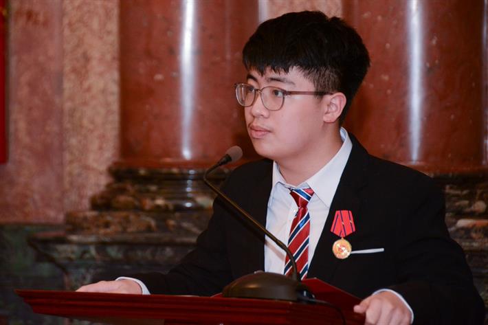 Bày tỏ niềm vui, tự hào khi được đại diện các học sinh phát biểu trong buổi gặp mặt, em Ngô Quý Đăng, học sinh Trường THPT chuyên Khoa học Tự nhiên, Trường Đại học Khoa học Tự nhiên, Đại học Quốc gia Hà Nội gửi tới Chủ tịch nước, các lãnh đạo Đảng, Nhà nước, Bộ GDĐT, các thầy cô giáo lời cảm ơn chân thành nhất.