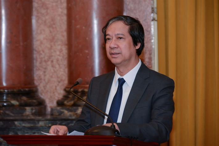 Bộ trưởng Nguyễn Kim Sơn cũng cảm ơn Chủ tịch nước về những ghi nhận sự cố gắng, nỗ lực của các học sinh đoạt giải cao trong Kỳ thi Olympic và Khoa học kỹ thuật quốc tế; đánh giá cao các cơ sở giáo dục, thầy cô trực tiếp hướng dẫn học sinh, cũng như sự đồng hành của các phụ huynh trong hành trình giúp học sinh phát huy năng lực của mình và giành kết quả đáng khích lệ.