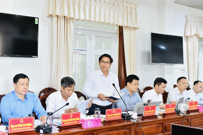 Bí thư Tỉnh uỷ Hậu Giang Nghiêm Xuân Thành trao đổi tại buổi làm việc