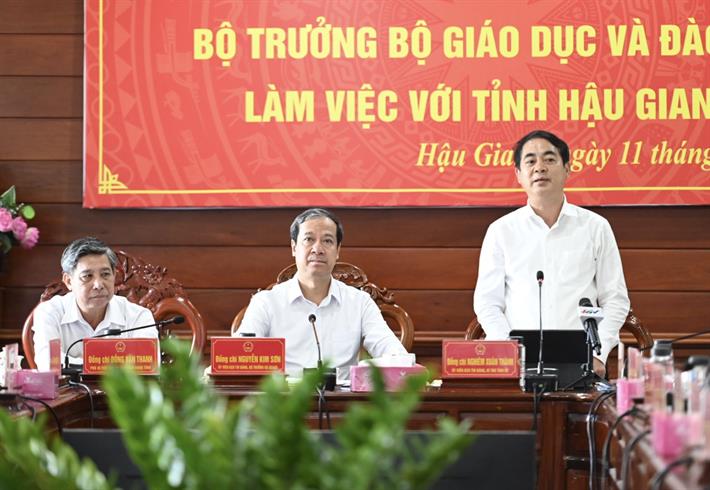 Báo cáo về tình hình phát triển giáo dục và đào tạo của địa phương, Phó Chủ tịch Thường trực UBND tỉnh Hậu Giang Trương Cảnh Tuyên cho biết: Toàn tỉnh hiện có 314 cơ sở giáo dục và đào tạo; quy mô, mạng lưới trường, lớp phát triển khá đồng bộ; tỷ lệ trường đạt chuẩn quốc gia đạt 83,07%, đứng thứ 2 khu vực đồng bằng sông Cửu Long.