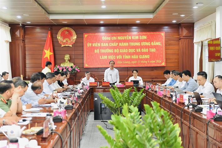 Phát biểu tại buổi làm việc, Bộ trưởng Nguyễn Kim Sơn đánh giá cao và chúc mừng những kết quả lạc quan của giáo dục Hậu Giang sau 20 năm kể từ khi thành lập tỉnh với xuất phát điểm nhiều khó khăn.