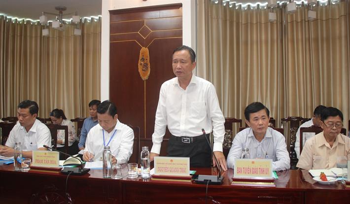 Ông Nguyễn Quang Thái, Giám đốc Sở GDĐT tỉnh Long An báo cáo về công tác chuẩn bị thi tốt nghiệp THPT của địa phương
