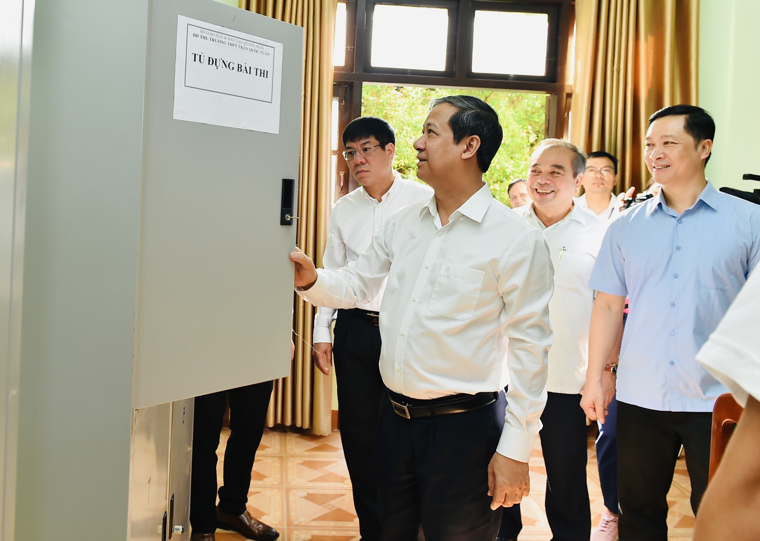 Bộ trưởng Nguyễn Kim Sơn kiểm tra chuẩn bị thi tốt nghiệp tại điểm thi tỉnh Quảng Ngãi