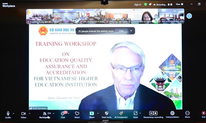 Các chuyên gia trong nước như PGS.TS Lê Ngọc Quỳnh Lam, Giám đốc Trung tâm kiểm định chất lượng giáo dục Đại học Quốc gia TP.Hồ Chí Minh; PGS.TS Lê Văn Thuyên, Trường Đại học Sư phạm Kỹ thuật TP.Hồ Chí Minh chia sẻ kinh nghiệm vận hành tổ chức kiểm định và triển khai xây dựng hệ thống bảo đảm chất lượng cơ sở giáo dục đại học và bảo đảm chất lượng cấp chương trình đào tạo.