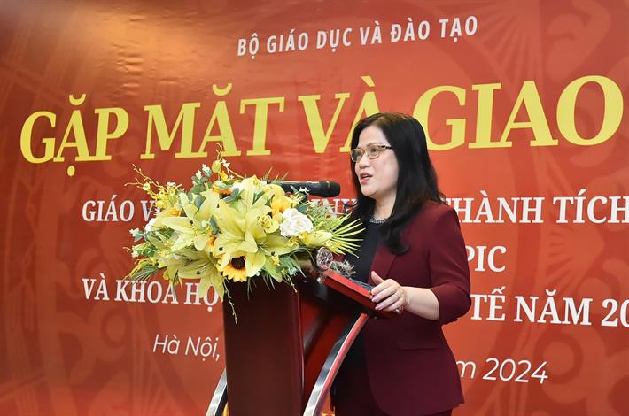 Phát biểu tại buổi giao lưu, Thứ trưởng Nguyễn Thị Kim Chi bày tỏ sự trân trọng với những thành tích xuất sắc của học sinh Việt Nam đã góp phần làm rạng danh giáo dục Việt Nam trên trường quốc tế.