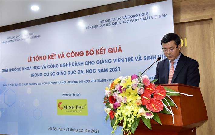 Phát biểu tại buổi lễ, Thứ trưởng Bộ GDĐT Nguyễn Văn Phúc chúc mừng và biểu dương các giảng viên trẻ, sinh viên đại học đã đạt thành tích xuất sắc trong học tập, nghiên cứu khoa học và được trao Giải thưởng cao quý hôm nay. Thứ trưởng đồng thời đánh giá cao các giảng viên, cơ sở giáo dục đại học đã tích cực tổ chức, hướng dẫn sinh viên nghiên cứu khoa học và đạt kết quả tốt.