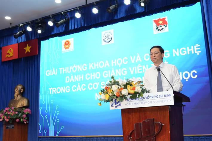 GS.TS. Nguyễn Minh Hà, Hiệu trưởng Trường Đại học Mở thành phố Hồ Chí Minh phát biểu tại lễ khai mạc