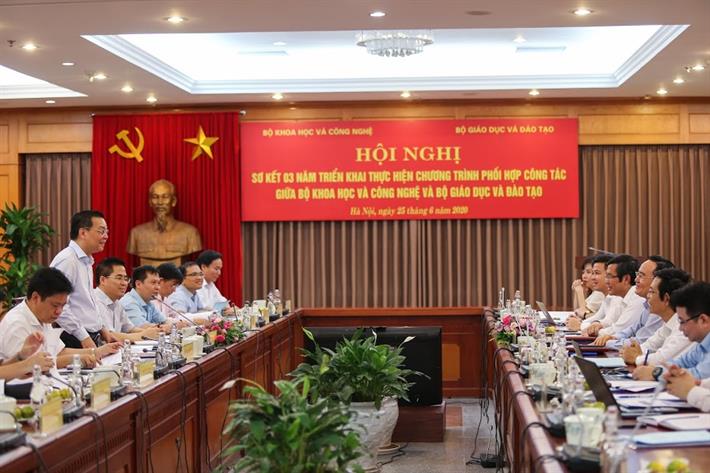 Báo cáo tại Hội nghị, ông Tạ Ngọc Đôn, Vụ trưởng Vụ KHCN&MT (Bộ GDĐT) cho biết, ngày 1/8/2017, Bộ KHCN và Bộ GDĐT ký kết chương trình phối hợp công tác giai đoạn 2017-2025 với mục đích hợp tác phát triển KHCN nhằm đổi mới căn bản, toàn diện GDĐT, nâng cao năng lực nghiên cứu khoa học và chuyển giao công nghệ, đào tạo nhân lực KHCN, thúc đẩy liên kết giữa các trường đại học, các viện nghiên cứu và các doanh nghiệp.