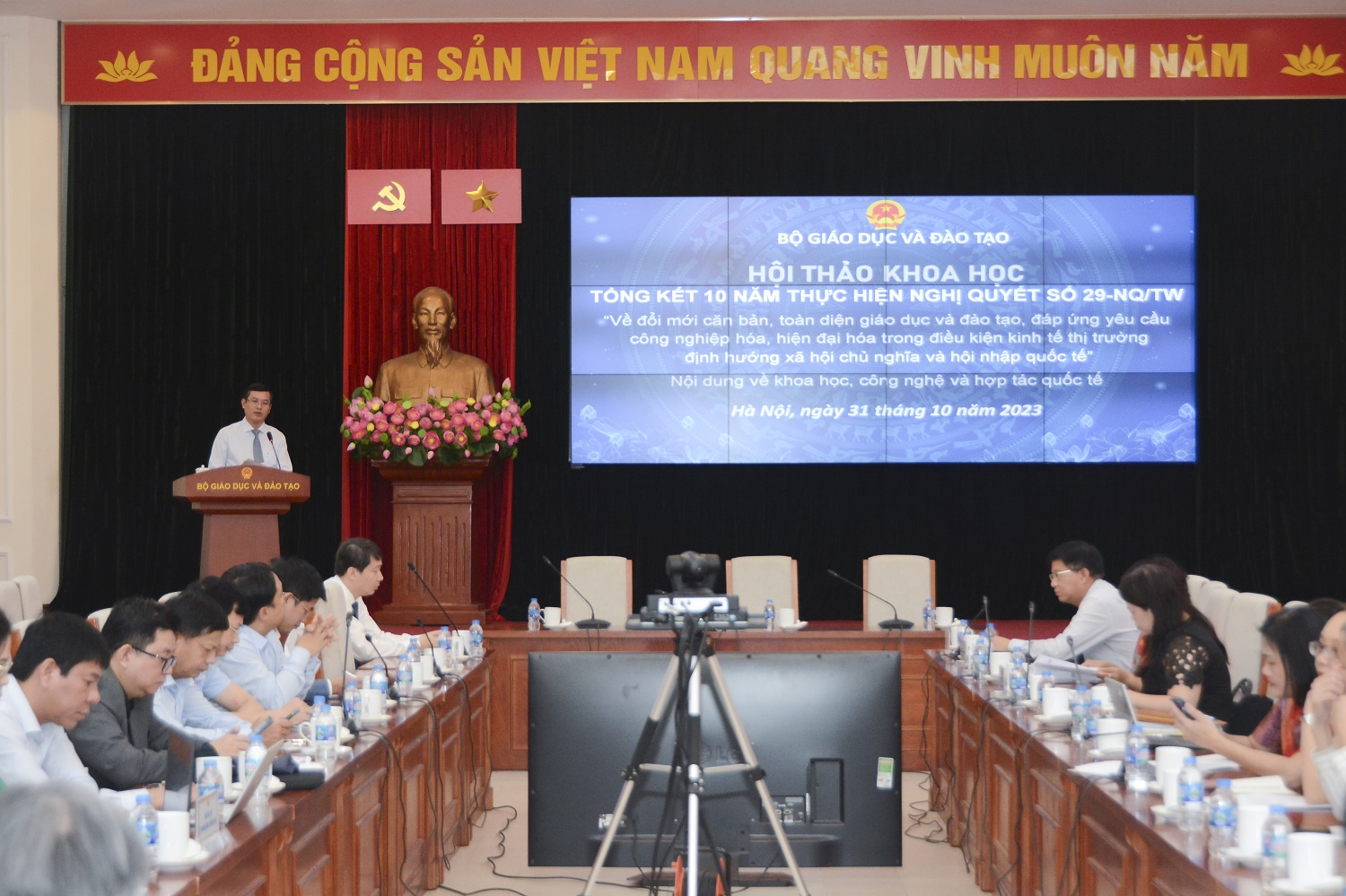Thứ trưởng cũng mong muốn, các ban, bộ, ngành trung ương, các cơ sở giáo dục đại học, các Sở GDĐT, các chuyên gia, nhà khoa học… sau Hội thảo này sẽ tiếp tục tham góp ý kiến bằng văn bản hoặc trao đổi để Bộ GDĐT tiếp tục hoàn thiện báo cáo tổng kết 10 năm thực hiện Nghị quyết 29 về đổi mới căn bản, toàn diện giáo dục và đào tạo.