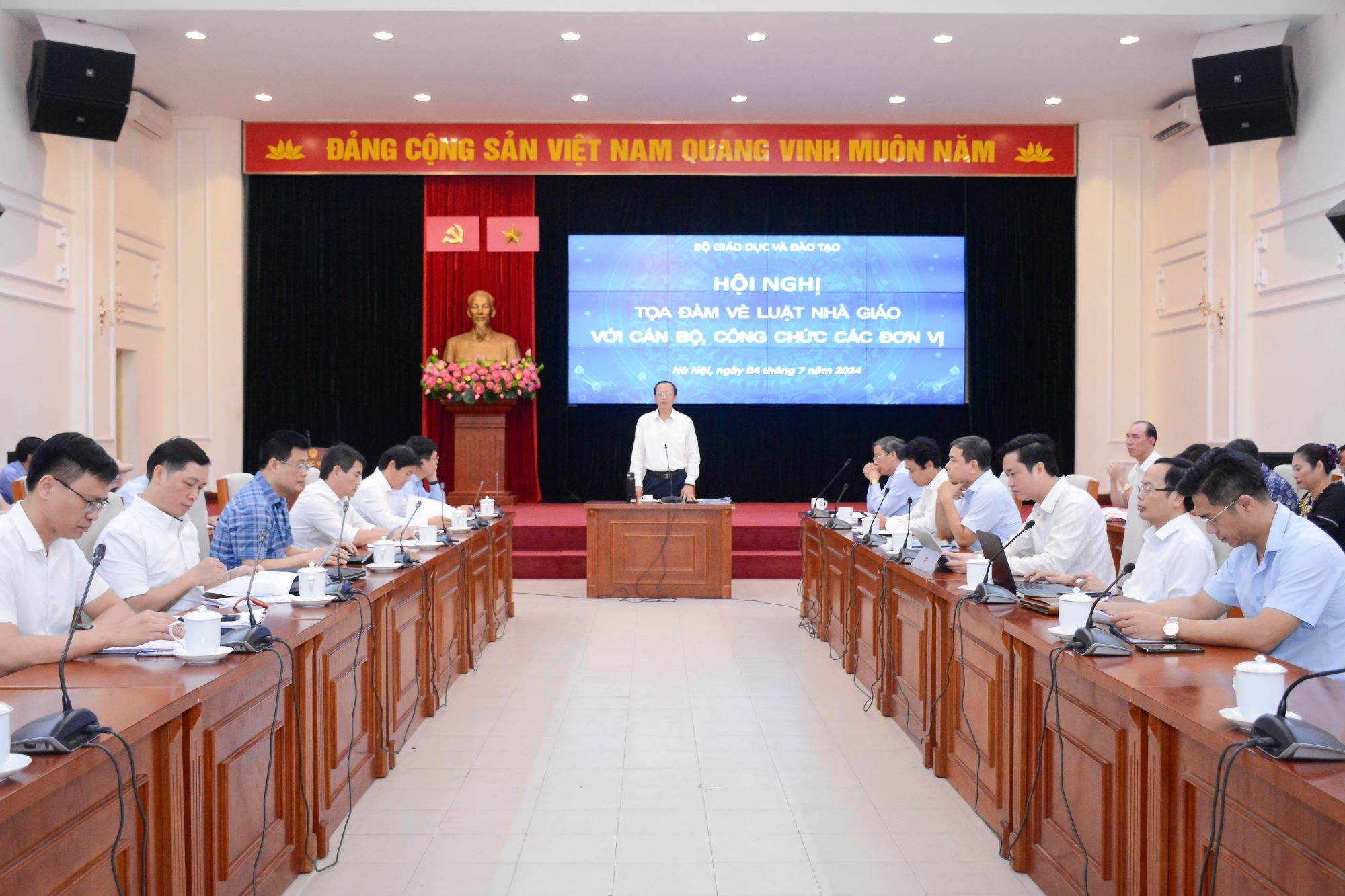 Ngày 4/7, Bộ Giáo dục và Đào tạo (GDĐT) tổ chức Hội nghị tọa đàm về luật Nhà giáo với cán bộ, công chức các đơn vị thuộc Bộ GDĐT. Thứ trưởng Phạm Ngọc Thưởng chủ trì hội nghị.