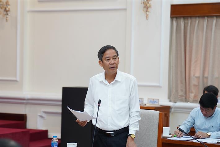 Cục trưởng Cục Nhà giáo và Cán bộ quản lý giáo dục Vũ Minh Đức trình bày báo cáo tại Phiên họp
