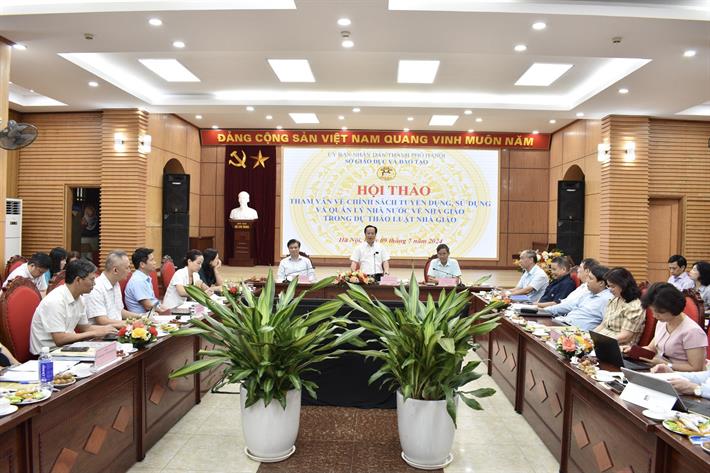 Chiều 9/7, Sở Giáo dục và Đào tạo (GDĐT) Hà Nội phối hợp với Cục Nhà giáo và Cán bộ quản lý giáo dục, Bộ GDĐT tổ chức Hội thảo Tham vấn về chính sách tuyển dụng, sử dụng và quản lý nhà nước về nhà giáo trong dự thảo Luật Nhà giáo.