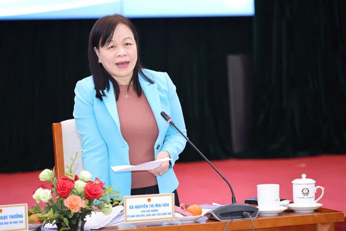 Phó Chủ nhiệm Ủy ban Văn hóa, Giáo dục của Quốc hội Nguyễn Thị Mai Hoa phát biểu tại phiên họp