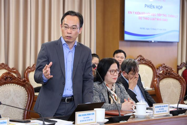 Báo cáo việc rà soát, tiếp thu ý kiến của Ủy ban Văn hóa, Giáo dục của Quốc hội đối với dự thảo Luật Nhà giáo sau các phiên họp trong tháng 12/2024, đại diện thường trực Ban soạn thảo, ông Vũ Minh Đức, Cục trưởng Cục Nhà giáo và Cán bộ quản lý giáo dục cho biết:
