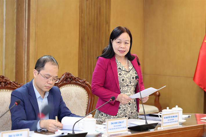 Phó Chủ nhiệm Uỷ ban Văn hoá, Giáo dục của Quốc hội Nguyễn Thị Mai Hoa trao đổi tại cuộc họp