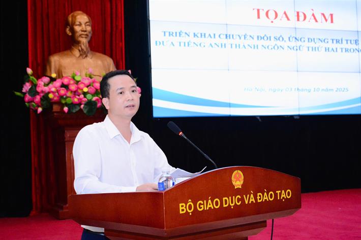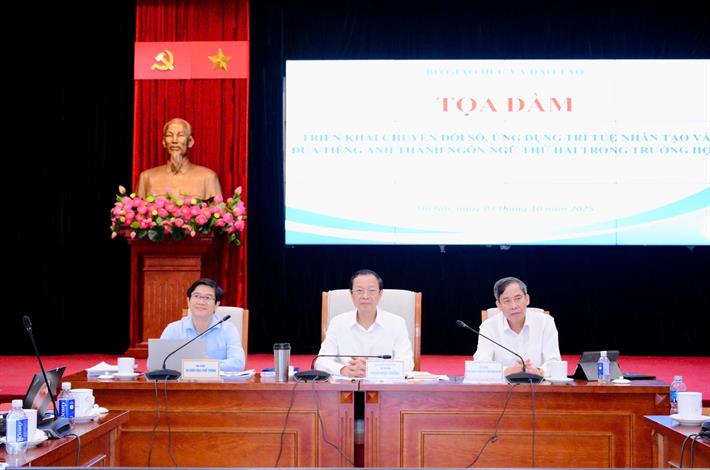 Thông tin tại toạ đàm, Phó Cục trưởng Cục Nhà giáo và Cán bộ quản lí giáo dục Phạm Tuấn Anh cho biết: trong thời gian qua, Bộ GDĐT đã tổ chức các hoạt động nâng cao năng lực số, ứng dụng trí tuệ nhân tạo trong quản lí, giảng dạy cho nhà giáo và cán bộ quản lí giáo dục như nghiên cứu, xây dựng Khung năng lực số cho giáo viên, cán bộ quản lí cơ sở giáo dục; xây dựng tài liệu và chuẩn bị tập huấn giáo viên cốt cán về ứng dụng trí tuệ nhân tạo với các chủ đề chuyên sâu.
