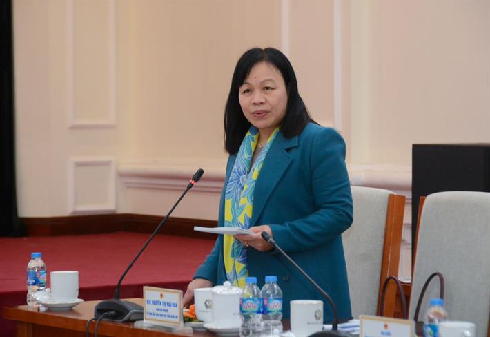 Phó Chủ nhiệm Ủy ban Văn hóa, Giáo dục của Quốc hội Nguyễn Thị Mai Hoa trao đổi tại hội thảo